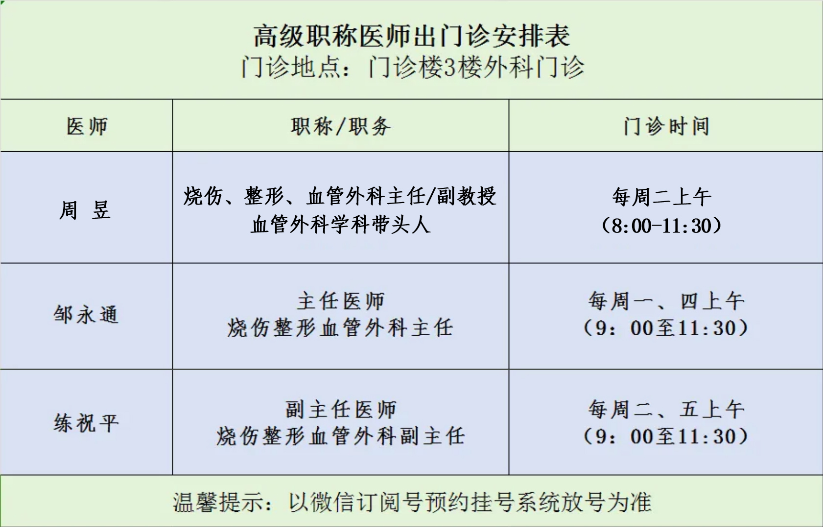 惠东县人民医院烧伤整形血管外科是医院的特色专科,业务主要涵盖三大亚专科:烧伤外科、整形与创面修复科、血管外科。通过业务拓展,医疗业务量稳步增长,医疗质量和患者满意度稳步提升,2022年被评为先进科室。 目前科室床位46张,病房均配备等离子空气消毒器,其中包括重症监护室3张床位。现有主任医师1人,副主任医师1人,主治医师3人,医师2人,其中硕士研究生1名。邹永通主任医师任科主任,2022年获得惠东医师奖、2023年被评为惠东县优秀医疗人才。2025年起广东省医疗卫生人才组团式帮扶专家、中山大学附属第一医院血管外科周昱教授挂任科主任、学科带头人。