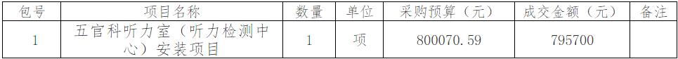 | 惠东县人民医院五官科听力室(听力监测中心)安装项目院内公开招标采购结果公告 |