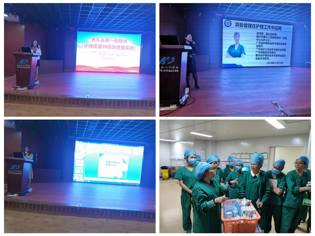 此次培训班特邀惠州市第三人民医院护理团队前来理论授课和开展工作坊,结合实际案例,从护理部、临床科室等多层面运用科学的管理方法进行护理质量控制,提高质控意识,及时发现并处理护理安全隐患,提升护理质量管理水平。