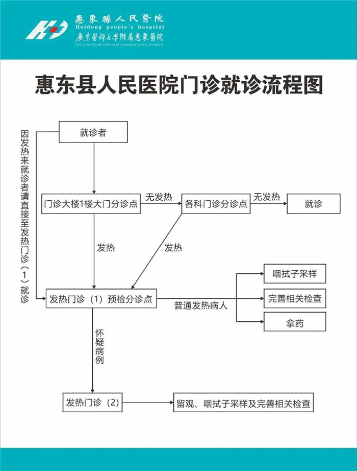 温馨提示:因疫情防控需要,口腔科、鼻内镜、喉镜检查、胃肠镜中心暂停门诊,但保留急诊;健康管理(体检)中心、儿保室暂停服务,开诊时间请关注惠东县人民医院信息发布。 2、所有来院人员需正确佩戴口罩。 3、医院实行封闭式管理,所有人员进入医院大门处需配合监测体温(自驾车来院的人员,需将车辆停至指定停车场),在门诊楼大门、住院部负一层大门、急诊科设置预检分诊点。所有进入医院大楼内的人员配合进行体温探测,进入医院的患者均经过预检分诊后方可进入诊区。