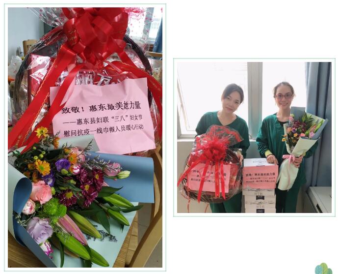 丘主席与我院党委委员、人力资源部张秀英主任进行了亲切的交流,详细了解我院女职工们的工作和生活情况,并代表县妇联向她们致以崇高的敬意和衷心的感谢,并致以节日的问候,同时将一束束鲜花和慰问品送到女医务工作者手中,希望她们在救治患者生命和身体健康的同时能做好自身的防护、舒缓紧张的心情,以更加良好的状态抗击疫情。