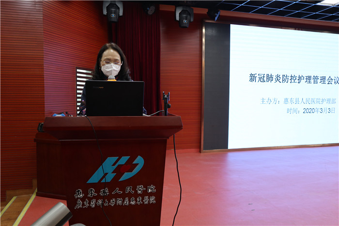 2020年3月3日下午,惠东县人民医院护理部在科教楼三楼学术报告厅举行《新型冠状肺炎防控护理管理会议》。党委委员、人力资源部主任张秀英及各临床科室护士长共30余人参加了本次会议,会议由护理部主任张慧琴主持。