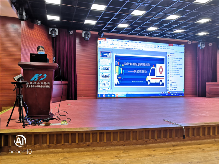 内五区护士长郑彩梅授课,内容为《新冠肺炎防控,我们在行动》: