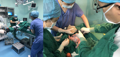 “不好,是脐带脱垂,快快快,开启绿色通道,准备手术......” 蔡景容副主任医师当即做出诊断并叮嘱道,与此同时,助产士彭慧星用盐水纱布包住脐带小心翼翼回纳入阴道并托住,防止脐带受压和脐带全部脱出。护士用手托住脱垂的脐带,全程弯着腰飞奔护送孕产妇直达急诊手术室。