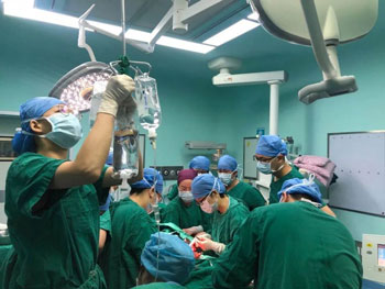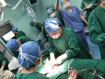 此时正在休假的产科主任余碧雅刚好带着生病的女儿在医院一楼儿科就诊,接到电话后,立即把怀中生病的孩子交给丈夫,匆匆丢下两个字“抢救!”就立即飞奔至抢救现场,一路上通知相关科室协调抢救并汇报领导情况的紧急性,一路飞奔……换上手术衣,做好手消毒,上了手术台,时钟刚跳显示17:27, 此时手术室已经集结了产科、麻醉科、新生儿科、普外科、呼吸科、输血科、重症医学科、心内科8路人马20余号人,一场多学科协作的抢救之战正式打响,分秒必争的抢救工作在手术室里紧张有序地全面铺开了。