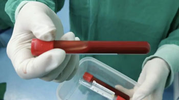 (试管里的血液呈不凝固状态,意味着患者凝血功能严重障碍)