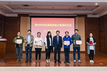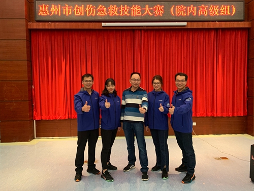 12月11日,由惠州市卫生健康局主办的首届惠州市严重创伤急救技能大赛在市一院举行,全市20家二级以上单位派出队伍参赛。经过公正、高要求的评比,我院创伤急救中心代表队在院内高级救治组急救技能“比武”中表现出色,成功脱颖而出,荣获三等奖。