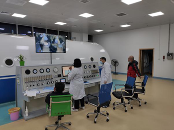 (治疗期间,医护人员通过高压氧舱对讲系统,与舱内人员保持沟通,调节舱内舒适温度(加减压过程中空气温度会改变)、讲解缓解耳鸣、耳痛方法等) 经一个多小时的高压氧舱治疗后,患者头晕头痛恶心等不适感明显得到缓解。迟发性脑病是一氧化碳中毒最常见的严重并发症,足疗程的高压氧舱治疗(15次以上),是预防和治疗一氧化碳中毒迟发性最重要的治疗手段,经治疗,患者恢复良好。