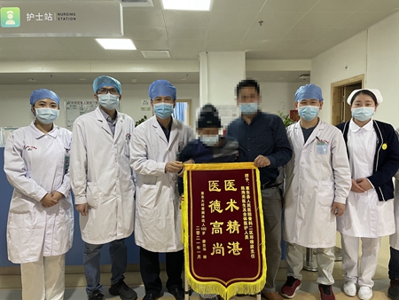 一名百岁老翁不慎摔骨折,卧床不起,我院骨科团队顺利为老人进行人工髋关节置换手术,术后三天老翁下床走路。近日,老翁在家属的陪同下特意为骨科二区的医护人员送上锦旗,以致感谢!