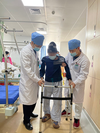 老大爷:“邓医生真的谢谢你们,我终于可以站起来走路,开心过年了” 邓颂波医生:“不客气!我们只是做了本职工作”