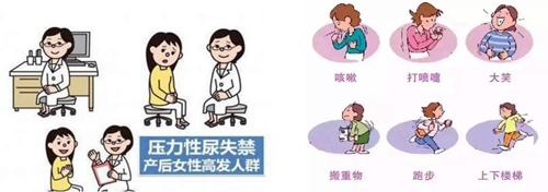 压力性尿失禁,指腹压突然增加导致的尿液不自主流出,另外尿频、尿急和排尿后膀胱区胀满感也是常见症状,80%的患者伴有阴道前壁膨出。压力性尿失禁分为两型,90%以上为盆底组织松弛引起,主要与妊娠、阴道分娩损伤、绝经后雌激素水平降低有关,另外10%患者为先天发育异常所致。