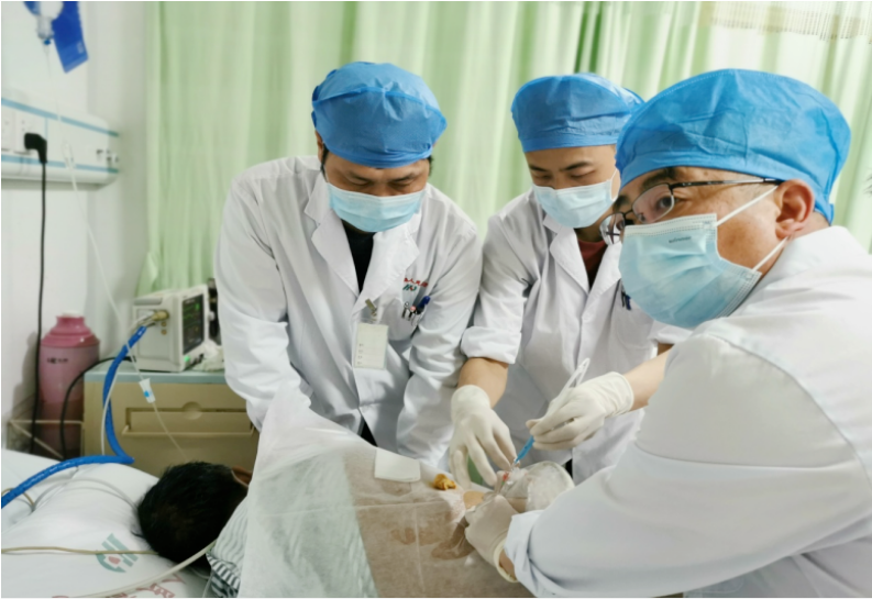 在经得患者及家属同意,排除手术禁忌症后,在谢晓华博士的指导下,超声科医师为患者进行常规消毒铺巾、穿刺点逐层麻醉,随后谢晓华博士手持穿刺针精准到达预先已确点的活检部位,成功取出患者腹膜组织标本,操作过程一气呵成。术后患者无明显不适。 据帮扶专家谢晓华博士介绍,超声引导下进行的各种病变穿刺活检、置管引流等操作,都是在超声可视下实时动态的进行,是现代超声医学的重要组成部分,是在超声显像基础上为进一步满足临床诊断和治疗的需要而发展起来的一门新技术。具有安全、微创、疗效好、患者依从性高等特点,对临床及时制定治疗方案具有重要的指导意义。除了穿刺活检、置管引流等常见操作外,还包括超声造影、肿瘤消融等。