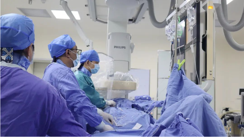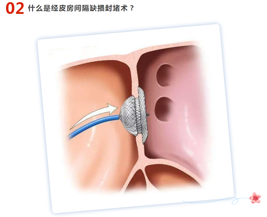 该手术是根治常见房间隔缺损的有效办法。采用经股静脉穿刺的方法,将封堵器固定在房间隔缺损处,阻断心房分流,恢复正常血液循环途径。该手术避免了开胸,具有疗效确切、创伤小、出血量少、恢复快等优势,已成为先天性心脏病治疗的主流。