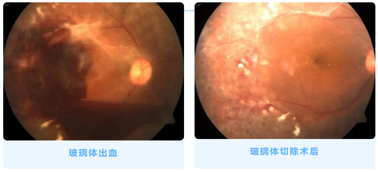 (4)手术治疗:糖尿病视网膜病变导致长期玻璃体积血不吸收、牵拉性视网膜脱离,特别是即将或新发的黄斑部脱离。
