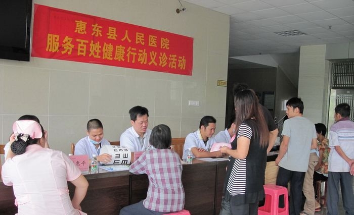 为积极响应国家卫计委号召,深入开展“服务百姓健康行动”,我院在近期开展了大型义诊周活动。 10月13日,外四区周运添副主任医师、儿科许秋卓副主任医师、内六区胡刚主治医师及护士2人参加惠东县卫生系统“服务百姓健康行动”大型义诊活动,共义诊61人,测血压53人,发放宣传资料157份。 10月15日,林贵喜副院长带领医务人员6人到多祝镇卫生院开展义诊活动,共义诊56人,测血压68人,发放宣传资料241份,发放药品价值1000元。 10月17日,中山大学附属第一医院与我院在荣超楼前举行大型联合义诊活动,义诊专科包括:神经内科、心血管内科、妇产科、普外科等8个专科,共义诊118人,测血压106人,发放宣传资料327份,发放药品价值2600元。 在系列活动中,各位专家热情接待前来咨询的每一位群众,耐心细致地为其讲解病情,提出治疗建议,开展健康知识宣传,受到群众好评。