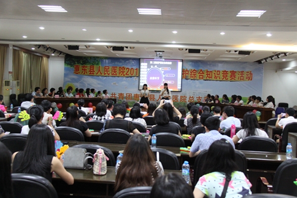 为了促进医院青年医生护士对医疗专业知识、医护核心制度、卫生法律法规的学习交流,营造良好的业务学习氛围,我院举办了第二届医护综合知识竞赛。经过24个临床、医技科室紧张的笔试初赛,产科、外四区、妇科、内七区、内三区、内四区、内一区和麻醉科八个科室进入了决赛。2015年7月30日(星期四)晚,“惠东县人民医院第二届医护综合知识竞赛决赛”在我院行政楼四楼会议室举行,医院领导班子及干部职工100余人出席观看了竞赛活动。 当天晚上,各参赛科室的啦啦队早早来到比赛现场,为本科室参赛队伍呐喊助威。在“必答”环节,各参赛队伍沉着冷静,面对各类问题,答题快速准确,均取得了不错的成绩。随后的“抢答”环节,气氛十分热烈,抢答声呼唤声与掌声此起彼伏,将现场气氛推向高潮。经过2个小时的激烈角逐,最终外科四区荣获第一名,麻醉科与妇科荣获第二名,内一区、内四区、内七区荣获第三名,产科、内三区获得优秀奖。