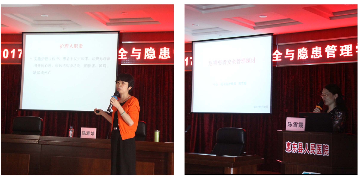 惠东县人民医院护理部主任张慧琴、副主任陈雅娥为各位学员进行了精彩的授课,并结合典型案例分析与大家进行互动探讨,会场讨论十分热烈。