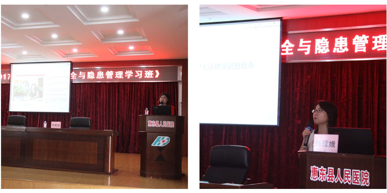 2017年9月23日,由我院举办的首个省级护理继续教育学习班《护理质量安全与隐患管理学习班》,在我院行政楼四楼大会议室举行,惠东县医学会会长何小霞、惠东县人民医院副院长周建君出席了开幕式,来自全县县直医疗单位及乡镇卫生院的护理工作者共300余人参加了本次学习班。