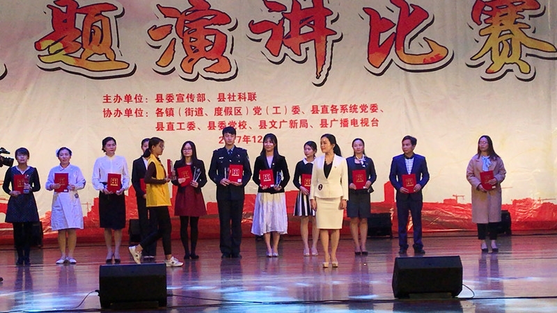 据了解,接到县委宣传部关于举办“学习贯彻党的十九大精神 开创山海统筹发展新局面”主体演讲比赛初赛的通知后,我院认真组织、挑选,派出赖铁嘉、王苗苗两名选手参赛,经过12月11日、12日两场初赛,两名选手在全县各系统、各乡镇共30名选手中脱颖而出,进入了前12名参加总决赛。