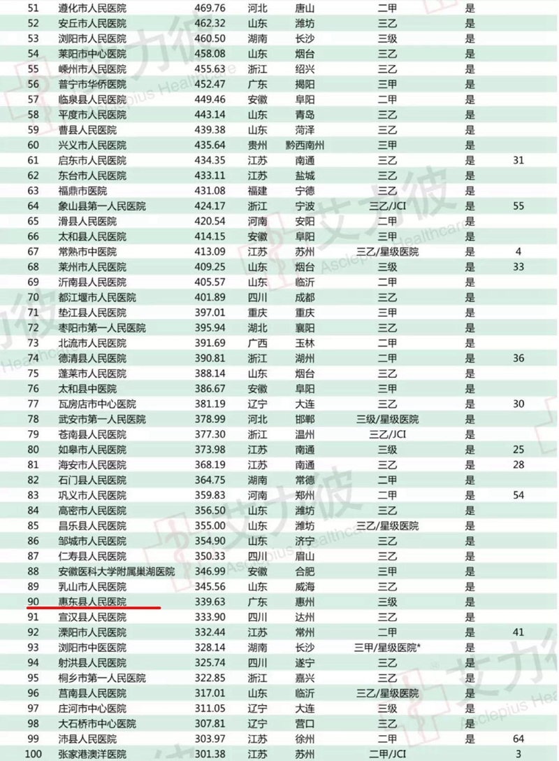 会场发布了《2018中国医院竞争力·县级医院100强》。在“2018~2019中国医院竞争力排行榜”中,我院以339.63分的成绩,位居全国县级医院竞争力榜第90名,比去年上升4名。