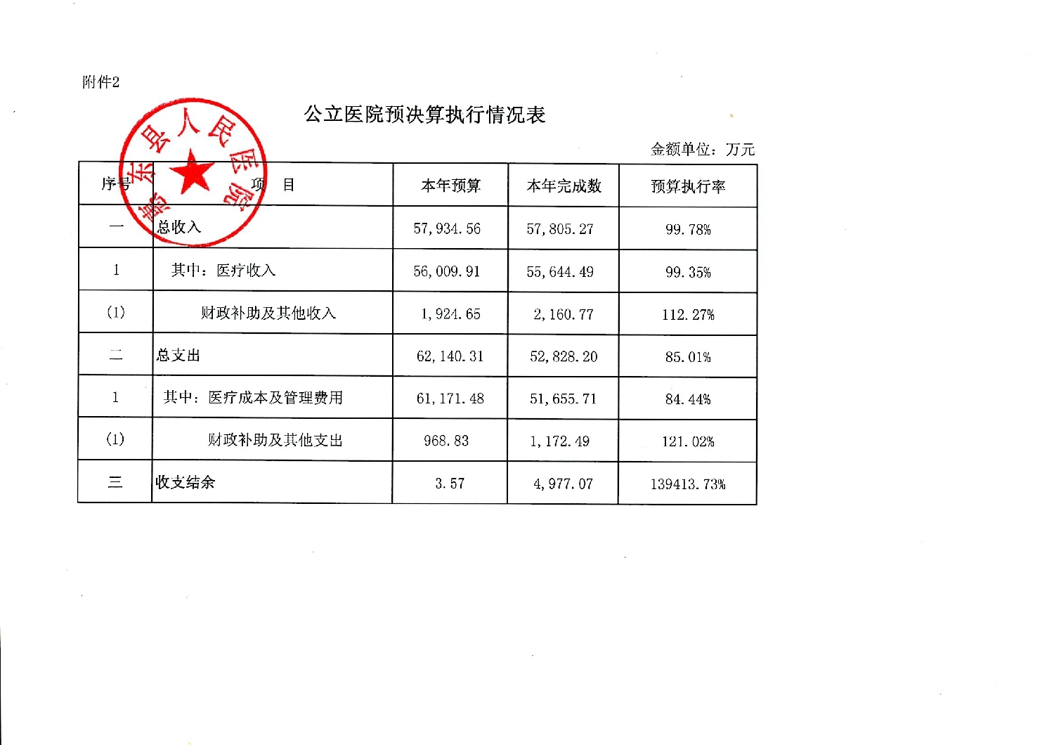 医院预决算执行情况表