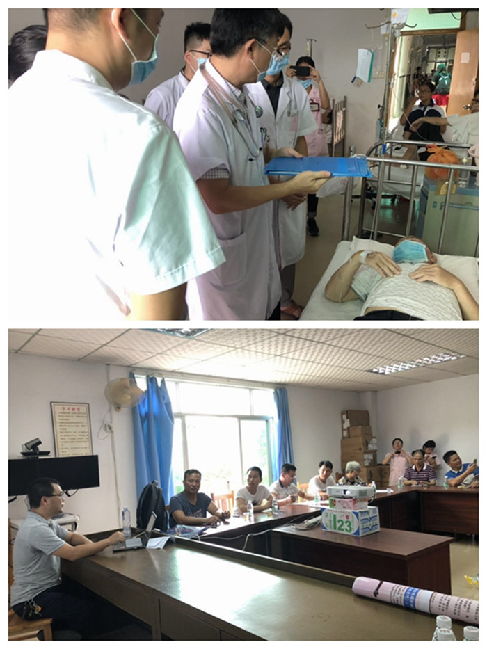 活动现场,姚键主任在住院病房与当地医生查房,为危重病人诊治提供专业性指导。陈伟河主任向村镇卫生院医生作《脑卒中的快速识别》讲课,普及早期识别脑卒中,要第一时间送往有条件做静脉溶栓医院救治,及时有效的抢救可大大降低脑卒中的致残率和死亡率。